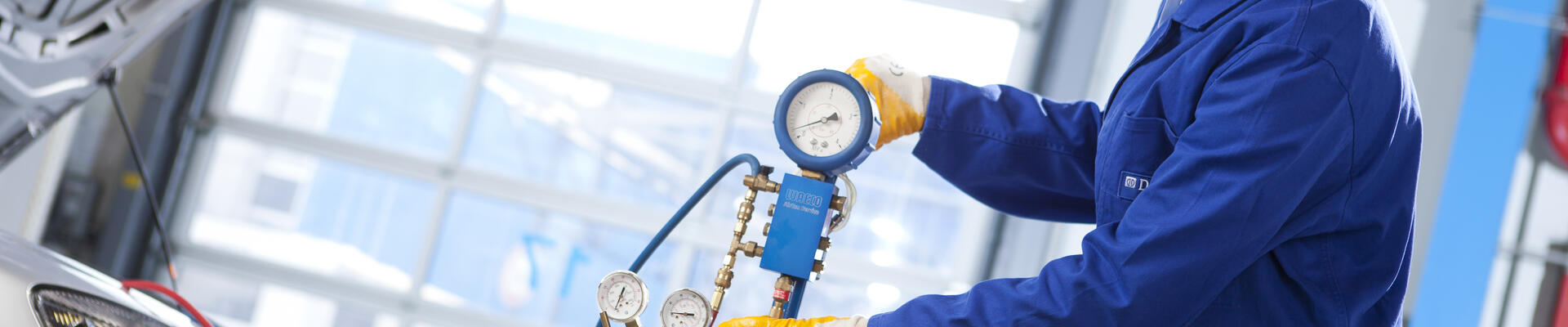 Hvis processen fortsætter uden fejladvarsel, kan du være sikker på, at systemet ikke har nogen lækage og kan fyldes med kølemiddel. Kravene i den tyske forskrift for kemikaliers klimabeskyttelse overholdes.