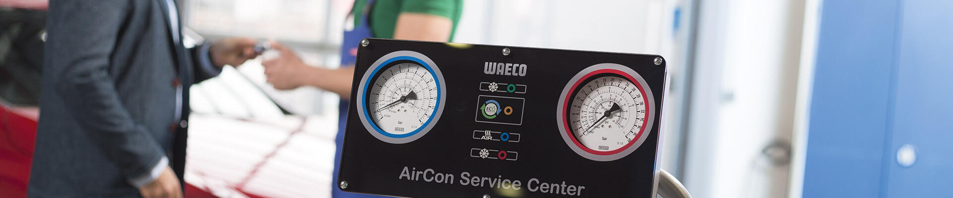 Space is often in short supply in today’s engine compartments. Therefore, automotive manufacturers are also using concealed areas to accommodate air conditioner components. On some models (e.g. 5-Series BMW, Ford, Volvo, Mercedes-Benz SLK) the high-pressure-side service port is mounted near the bonnet lock bracket or too deep, inaccessible with a standard A/C service coupler. WAECO AirCon Service has developed a matching service tool for easy access to the port.