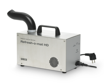 Cleanliness and hygiene are paramount in pandemic times – this also goes for everyone travelling in a car, motorhome, bus or truck. Cleaning the surfaces is a relatively easy task with the commonly available disinfectants. When it comes to the effective disinfection of a vehicle A/C system, professional equipment is required. The ultrasonic atomizer WAECO Refresh-o-Mat HD provides excellent conditions for a thorough disinfection down to the farthest corners of the A/C system. Manufacturer Dometic also offers the matching active substance: The A/C cleaner WAECO AirCon Refresh has proven in a laboratory test according to EN 14476 to effectively eliminate enveloped viruses – viruses of the same category that also includes the coronavirus.